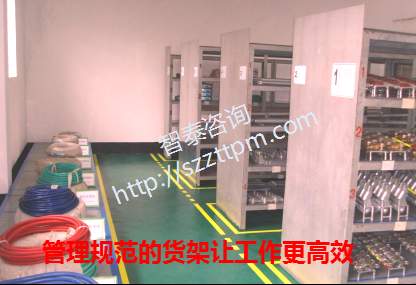 6S咨询管理对仓库的货架要进行规划,物品存放要求是必须做到分区、分类、分架、分层、分位固定存放,并对物品定位标示,存放的方法要考虑如何做到物品的先进先出及库存管理,物品在货架存放时重的物品放在最底层,使用频繁的物品放在中间层,轻的物品要放在高层,也要考虑到使用频繁的物品放在出品处附近。