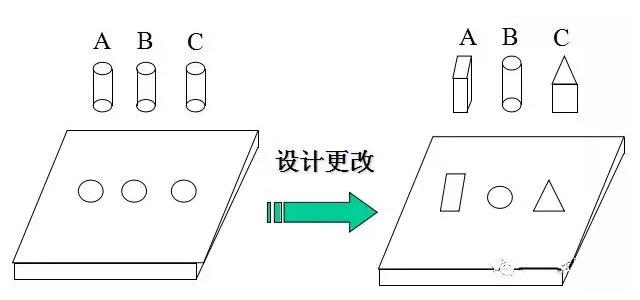 有形防呆模式是针对产品、设备、工具和作业者的物质属性,采用的一种硬件防错模式。如电饭煲中的感应开关即为一种有形POKA-YOKE防错模式。如果电饭煲中未加入水,加热开关就无法设定至加热位置,只有加水,加热开关方可打至加热位置