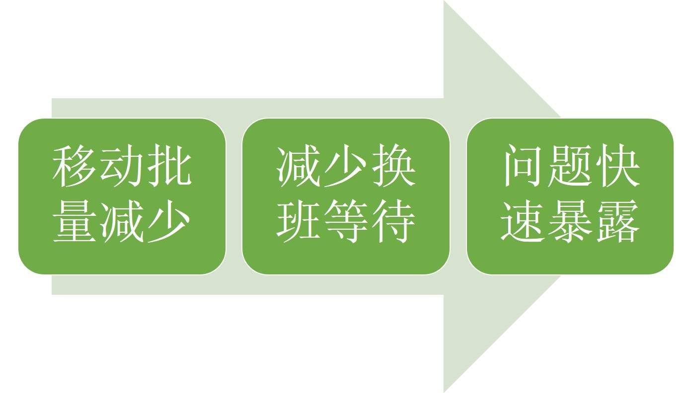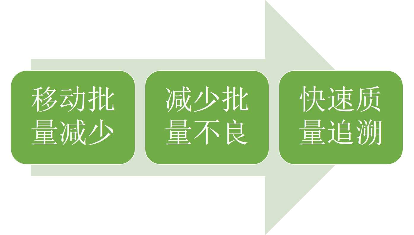 做一个、传送一个、检查一个,将制品经过各加工工序而做成完成品。 单件流动是将浪费“显现化”的思想与技术,在原有状况的基础上以单件流动方式试做,将批量生产时发现的不了的浪费显示出来,以此作为改善及建立流线化生产的起点。