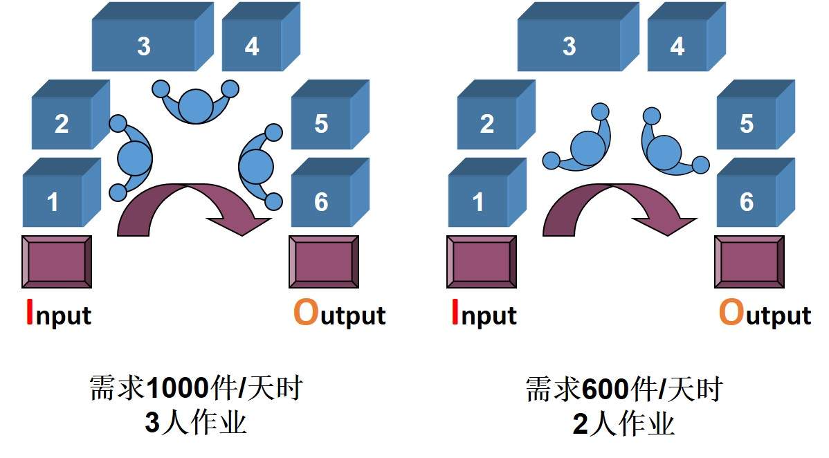 在传统生产方式中,工人通常只会操作一种设备。当A设备的生产能力很强而B设备的生产能力较弱时,很容易造成A设备的操作工人空闲而B设备的操作工人过于繁忙,从而导致生产不均衡。因此,“一个流”生产要求工人能够操作多台生产设备,通过培养多能工来均衡整个生产节拍。此外,培养多能工还有利于人员的增加或减少。