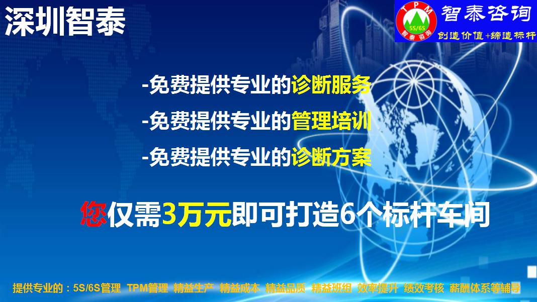 深圳智泰下属6S咨询公司在国内对不同行业推进6S管理,98%以上取得非常满意的效果,智泰专业团队三天为企业打造成功6~8个标杆车间。
