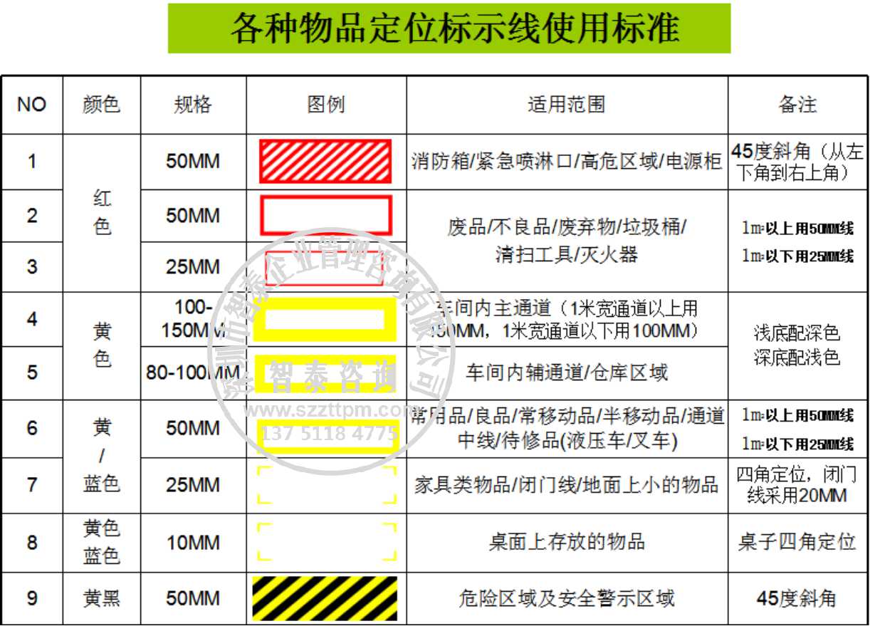 以上只是一小部分可视化管理标准,需要完整版可视化标准手册请与智泰咨询联系!