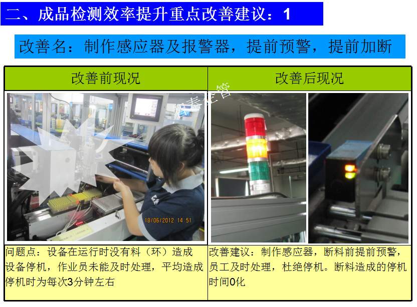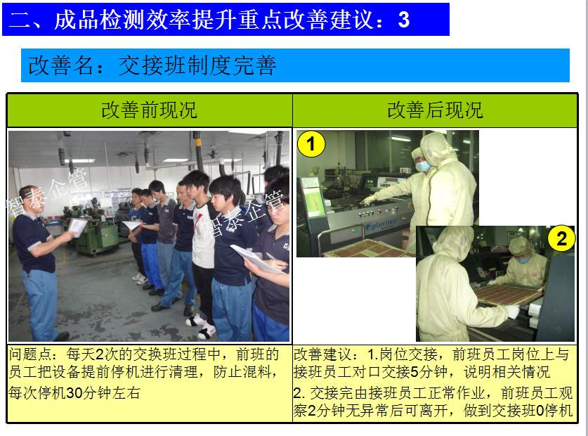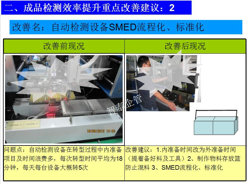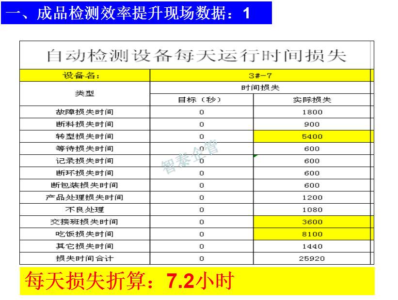 世界级制造及精益管理是智泰人一生追求的理想,智泰咨询在企业推进精益生产后平均生产效率提升35%以上,智泰专业团队为企业消除八大浪费,通过精益管理,提高企业的生产效率和产品质量,持续推进焦点课题改进重大问题,每年给企业带来的收益平均有800万以上,附件为智泰咨询顾问团队为某企业生产效率提升的案例,请查阅:
