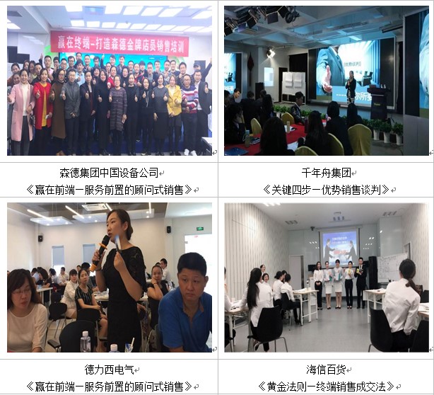 顾问式销售金牌课程,常老师结合行业特点,几乎是为森德专卖体系量身打造一次培训课程,经销商和其店长的参与度非常高,课堂气氛活跃,课程既规范了专卖店的销售流程还很好的解决了店铺销售过程的一些销售问题,经销商认可程度都很高!