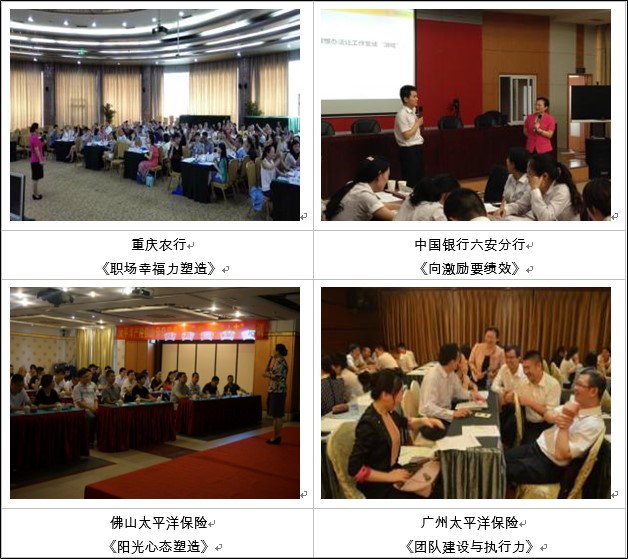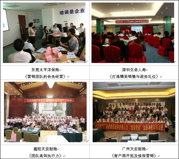 各类企业:大庆集团、河南邮政、新兴铸管、江西新余钢铁、中国核二建集团、中航工业沈飞集团、浙江国技互联信息技术有限公司[温州百度]、一汽大众成都分公司、益阳移动、中石化华北油气分公司、中国电信、广州电信、珠海邮政、深圳地铁集团、深圳百康健康、大琢投资、琢子文化、广东南航、佛山爱得乐集团、顺德区大良科技、广东精艺金属股份有限公司、光大房地产、中科科技发展、广东金刚工程、冠捷电子、深圳鹏都兴实业、佛山伟仕达电器有限公司、佳隆股份、理丹电器、建华管桩、深圳TCL、广东嘉晟生物科技、天安数码城集团、广东高速通驿集团、华企商学院等。
