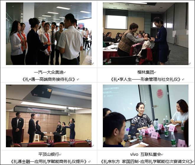 →授课累计近千场,给近10万名企业员工讲授《礼赢商运》、《礼誉人生》、《礼赢职场》等应用礼学系列课程,深受学员喜爱。